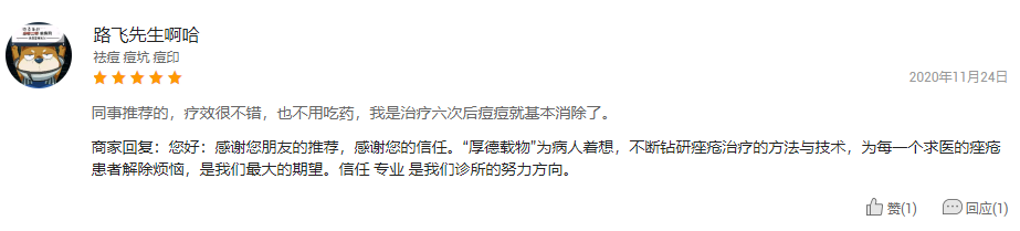 “祛斑效果很赞,龚医生人很好,治疗都是从患者角度出发,保险治疗。诊所卫生环境很好,做完后都有消毒,确保干净卫生!一句话,仪器好,大夫技术好!值得信赖!”——69...2@qq.com “来这里看痘痘,效果很不错。长痘的福星”——151*****274 “服务一流,大夫人都很好,之前长的大脓包痘痘基本都好了么么哒(*^3^)感谢!”——小小濱儿 “我脸上的痘痘好多年了,去了好多大医院看都不见疗效。经朋友介绍来龚医生这边,大概三个月脸上的痘痘就消失了,疗效显著,谢谢龚医生。”——瞭望星空lgc “很专业,很卫生!效果很好,已经介绍朋友来了,效果很好!”——186*****886 “服务挺好的,祛痘有效果,坚持用,老板挺老实的”——爱123来吧 “不错 环境好 脱毛干净 医生态度也好”——11...5@qq.com 厦门海沧龚永胜美容皮肤科诊所